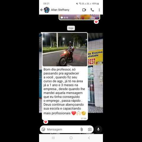 "Oi professor, só passando pra agradecer a você , quando fiz seu curso de AGP , já estou trabalhando"